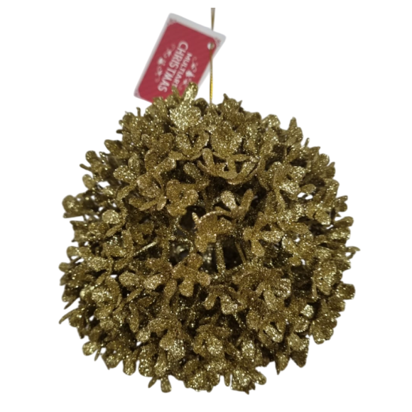BOLA FLOR GLITTER 11CM DOURADA