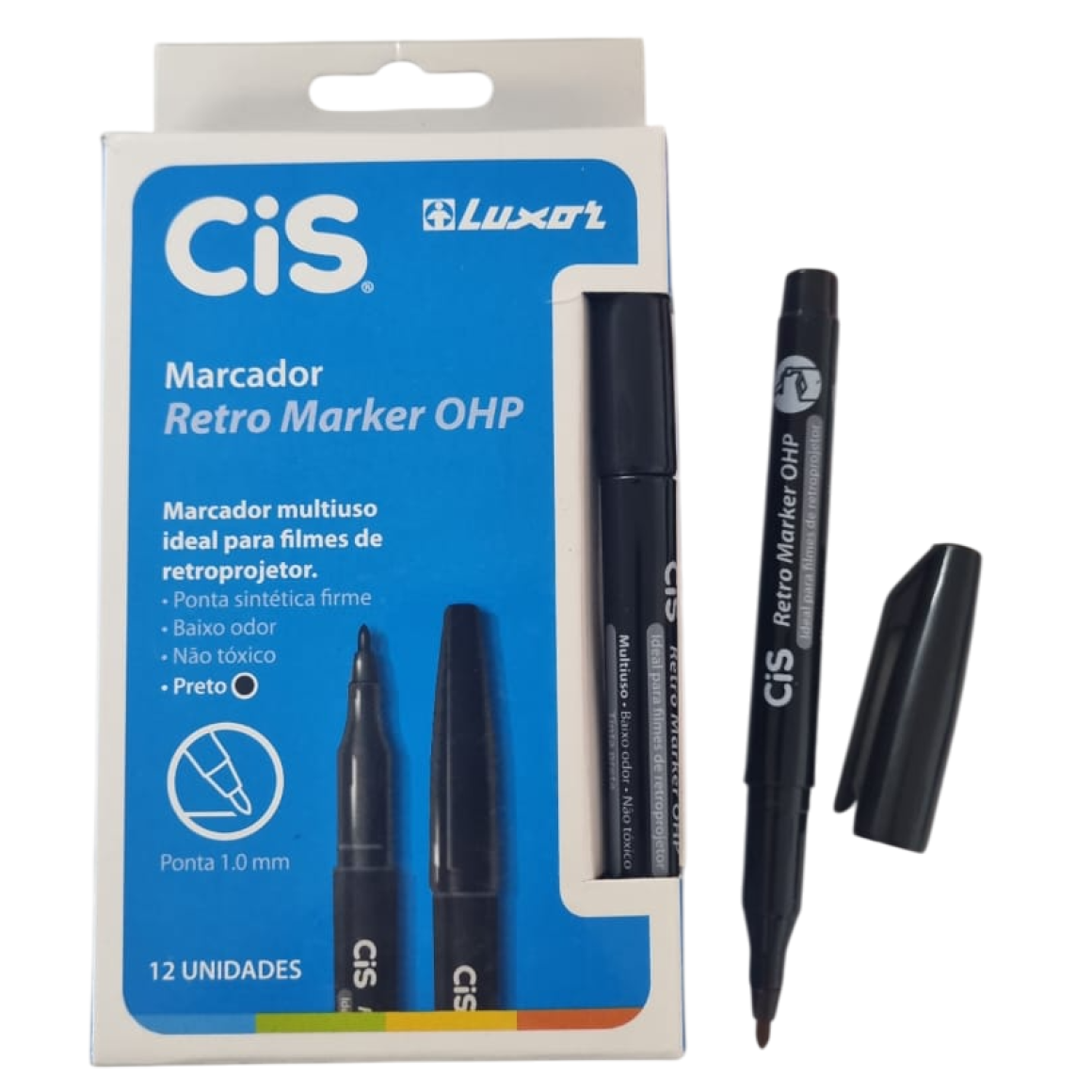 MARCADOR RETROPROJETOR 1.0 12UN PRETO