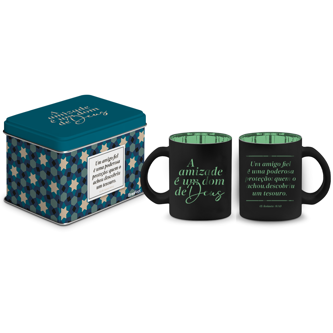 CANECA VIDRO DIAM.MET.LATA 300ML AMIZADE É UM DOM DE DEUS