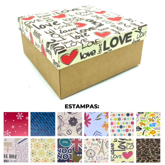 CAIXA PRESENTE 17X17X8CM KRAFT ESTAMPADA