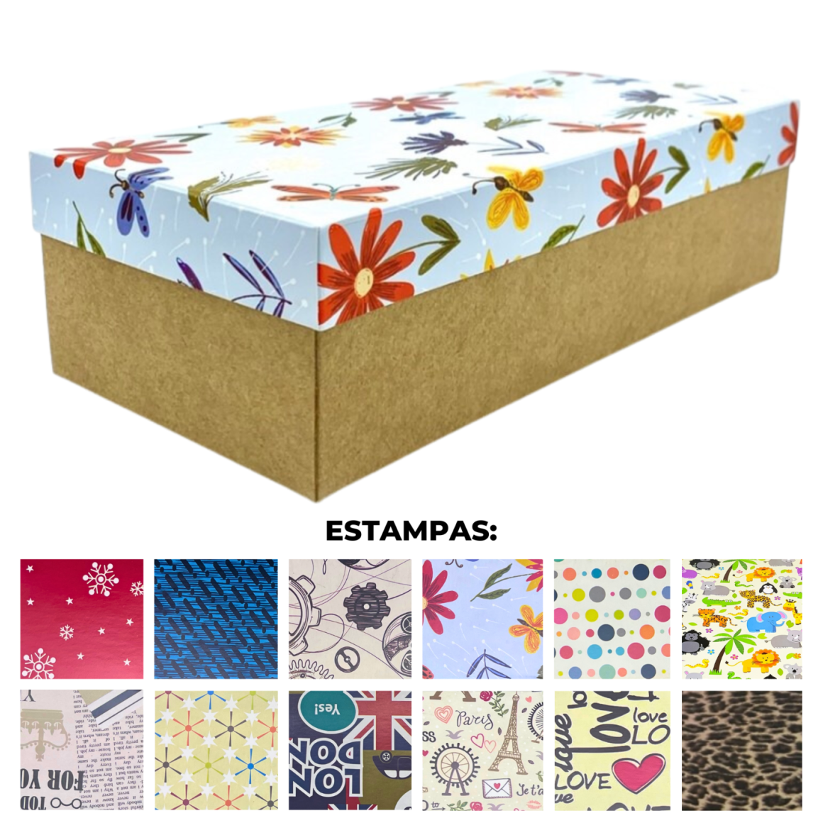 CAIXA PRESENTE 25X12X7CM KRAFT ESTAMPADA